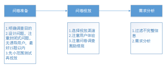 调查问卷:调查问卷一般是通过互联网,设计问卷让用户进行回答,通过收集调查问卷对问卷进行数据整理,获得需求。