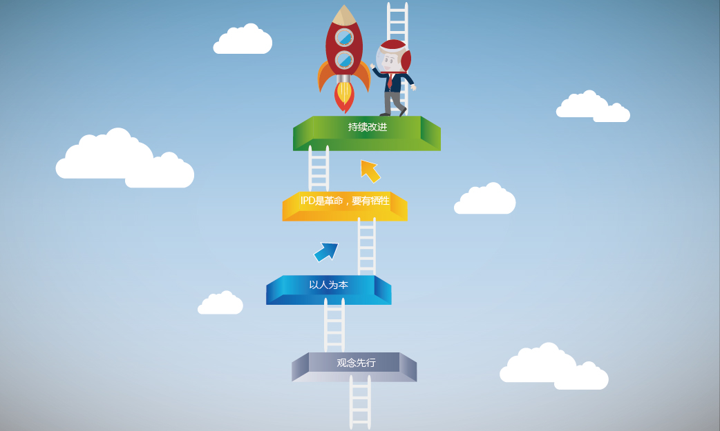 IPD作为一套系统的产品管理及经营模式,通过对组织和流程的重新整合,最终实现真正的投资与市场导向、快速的响应与交付。这种改变对于已经具有一定基础的企业来说,需要对以往的成功历史进行自我否定和重新认识;需要对已经运作娴熟的组织架构进行大幅度的调整;需要对已经清晰的职能与权力进行重新划分;需要对已经习惯了的工作程序进行颠覆与重构……,这一切,就是一场思想与行为方式的重生,是一场彻底而深刻的革命!