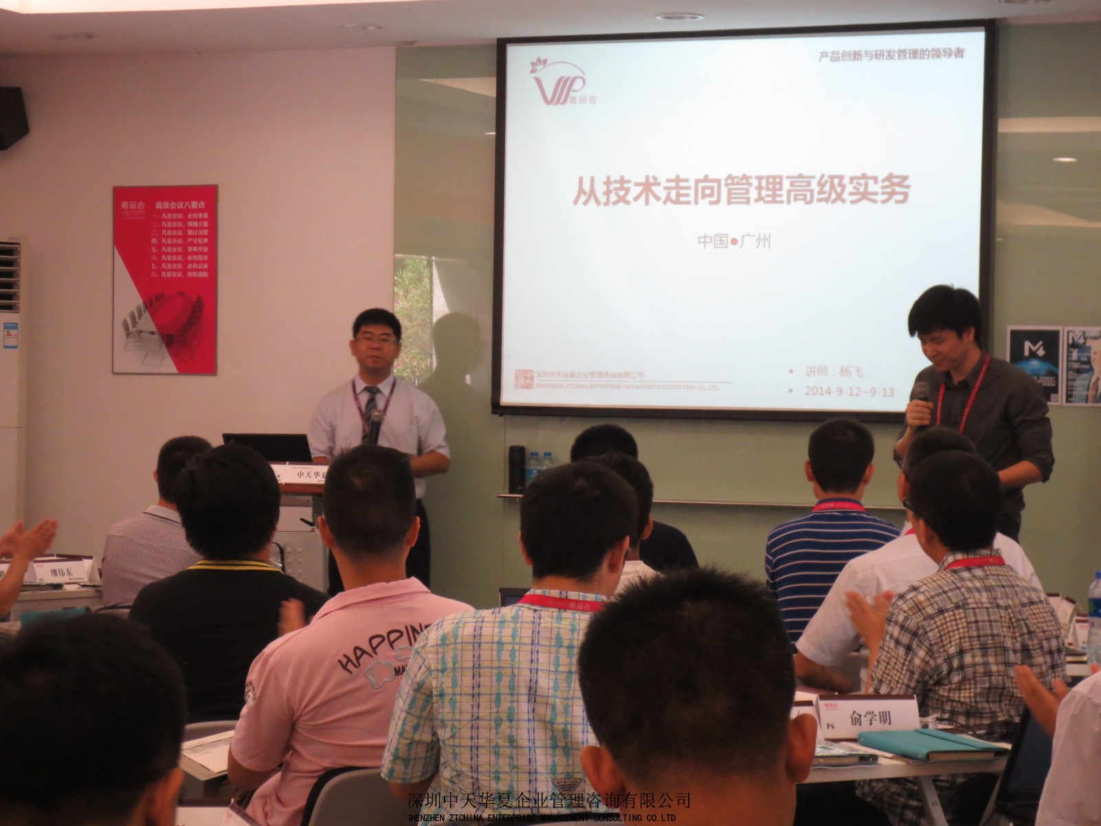 2014年9月12-13日深圳中天华夏为国内某互联网知名企业提供《从技术走向管理》的培训。本次课程由著名的产品与研发管理专家;中国品牌讲师大全推荐研发管理权威,中国十大项目管理优秀讲师,中天华夏总经理杨飞先生主讲。