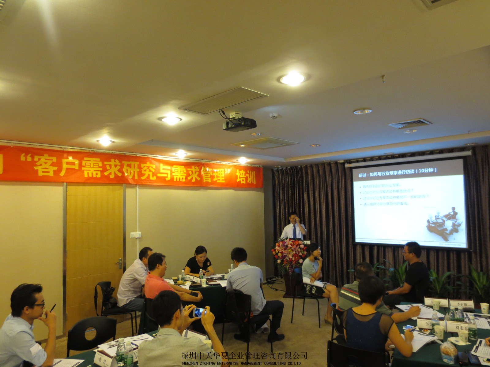 2014年09月19-20日中天华夏咨询在深圳成功举办了《客户需求研究与需求管理》公开课,此次课程有来自电子通讯,影像器材,医疗设备,家电,芯片等多个行业的客户参加,课程由原联想产品管理专家,资深产品经理教练,中天华夏资深顾问,金咸勇先生主讲。