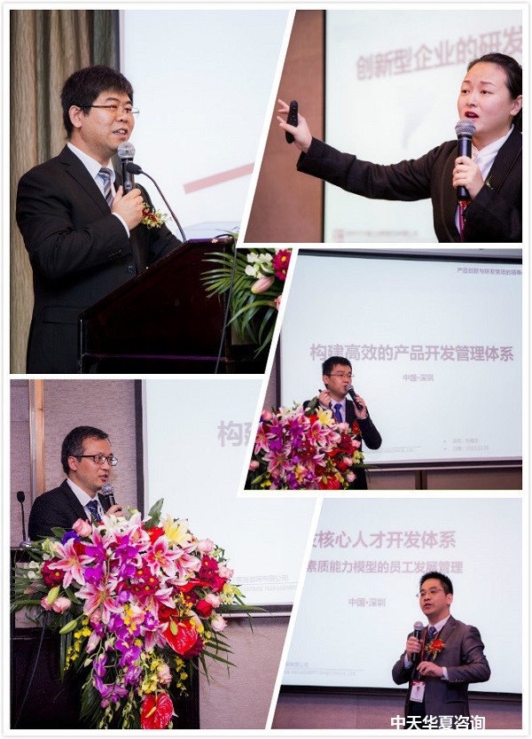 2015年12月30日,由深圳中天华夏企业管理咨询有限公司主办的 “产品研发与企业创新力”高峰论坛活动在深圳东华假日酒店如期举行并取得圆满成功。本次活动聚集了国内近100家知名企业,出席的客户包括中兴、无限极、白云电气、万和新电气、中国通信服务、美的、迈瑞医疗、影歌科技、全志科技、TCL、芒果网、中维世纪、魅族、努比亚等200多位知名创新型企业的总经理、研发总监、人力资源总监等中高层管理人员。