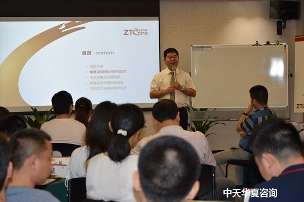 中天华夏咨询总监孙福生先生将亲自担任本次实施项目的项目经理,在沙董与杨总的指示下。孙总监强调从这一刻起,中天华夏与格雅表业的两支队伍深深地绑定在一起,这次项目需要双方同舟共济、高效协同,唯有合力才能实现本次项目的艰巨目标,孙总监向参会人员介绍了本项目的目标、范围、实施的周期与计划、顾问团队介绍以及项目操作管理的基本规则。