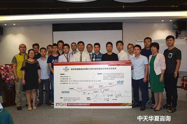 2017年6月30日,深圳市格雅表业有限公司(简称:格雅表业)“产品开发管理体系建设咨询项目”正式启动,出席本次项目启动会议的领导及同事包含格雅表业董事长沙林珍先生、总经理沙琳凯先生、执行董事周长松先生、项目总经理沙小花女士以及来自电商部、销售部、开发部、工程部、财务部、供应链等各部门负责人、中天华夏董事长杨飞先生、中天华夏咨询总监孙福生先生、资深顾问文欢林先生、资深顾问申志勇先生等参加会议。在长达6个月的项目前期沟通中,格雅表业各级管理层多次对中天华夏公司及顾问的专业能力及负有历史使命与责任感的职业态度表示肯定,经过双方的一致努力,最终达成本次项目合作\r\n。