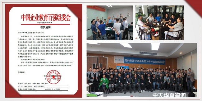 中天华夏顾问团队于2015年开发的独具特色的课程--《产品经理特训营》,通过在121家企业进行实地调研,总结出企业优秀的产品经理所必备的四大核心能力:产品战略&规划能力、产品开发&运营管理能力、产品创新&技术创新能力,开发并设置了与之匹配的能力提升课程和知识导入,全面构建起完成该职位全部工作所必备的知识技能体系。2016年年初课程一经推出,受到广大企业的好评,目前已经在美的集团各事业部、白云电气、歌尔声学、影歌科技等20多家企业内部成功实施,实现了大批产品经理从“小白”到“大牛”的华丽转身。在本次评选活动中,本课程凭借良好的课程效果和客户口碑,获得了“中国企业培训十佳精品课程”称号。